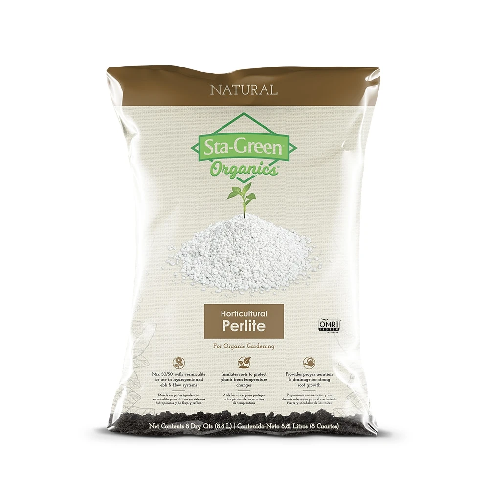 Sta-Green Organics horticultural Perlite is a natural soil amendment that loosens heavy soil, improves drainage and promotes robust root growth. We carefully select our Perlite for consistency, quality and purity. Perlite can be used either in combination with other soil amendments, such as coconut coir, compost and sphagnum peat moss, or on its own in a soil less hydroponic garden.